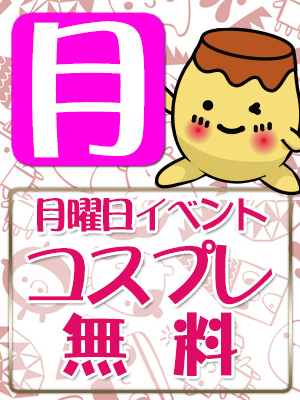 | ☆お好きなコスプレ1点無料! ※120分コース以上でご利用のお客様に限ります ★合言葉は「月曜イベント」です! ※お伝えして頂きませんと適用になりません |